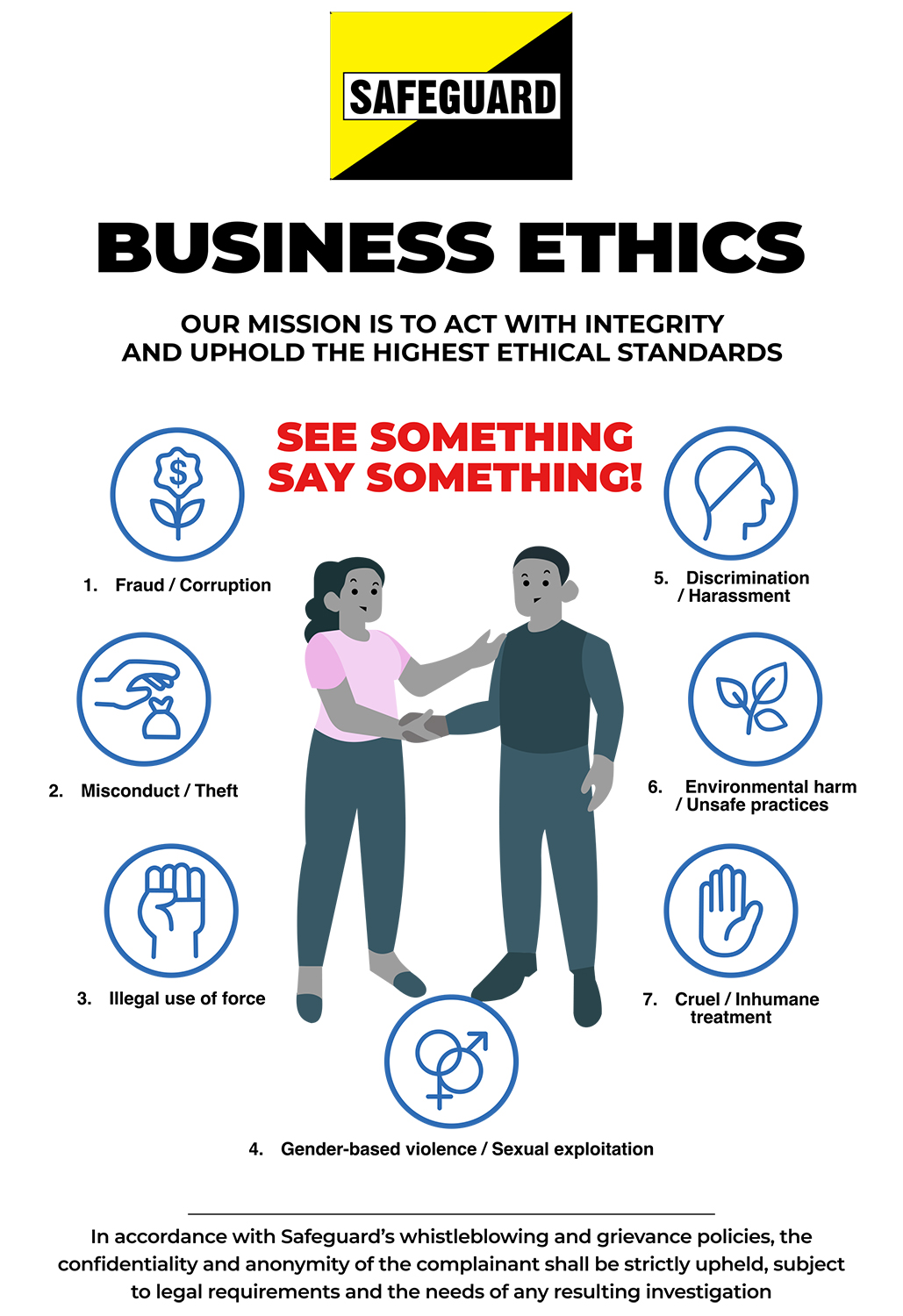 - Provide accessible, confidential, and transparent grievance procedures for affected individuals and stakeholders to report incidents or concerns without fear of retaliation.