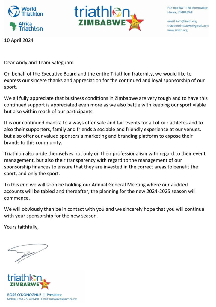 It is our continued ambition to deliver “The Must Do Event” event here in Zimbabwe and to this end, we thank you again most sincerely for your continued support of the Troutbeck event and the sport of triathlon here in Zimbabwe.