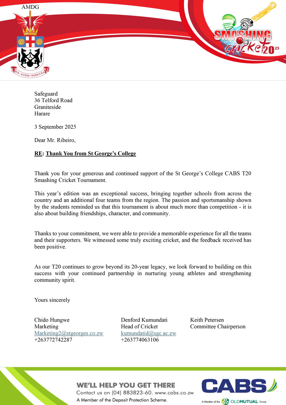 On behalf of Harare International School, I would like to extend our sincere appreciation for your generous support and partnership in making the 2025 HIS May Fair an outstanding success.